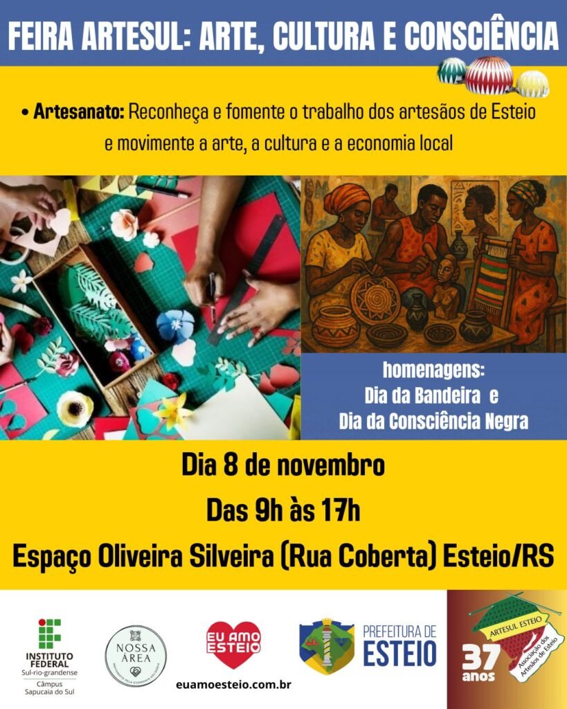 A Associação dos Artesãos de Esteio – ARTESUL, uma das entidades mais tradicionais da Cidade, com 37 anos de atividade, convida a comunidade da Região Metropolitana de Porto Alegre para uma nova edição de sua Feira de Artesanato. O evento acontece no dia 8 de novembro, no Espaço Oliveira Silveira e combina a valorização do trabalho manual com reflexões cruciais sobre história e cidadania.
