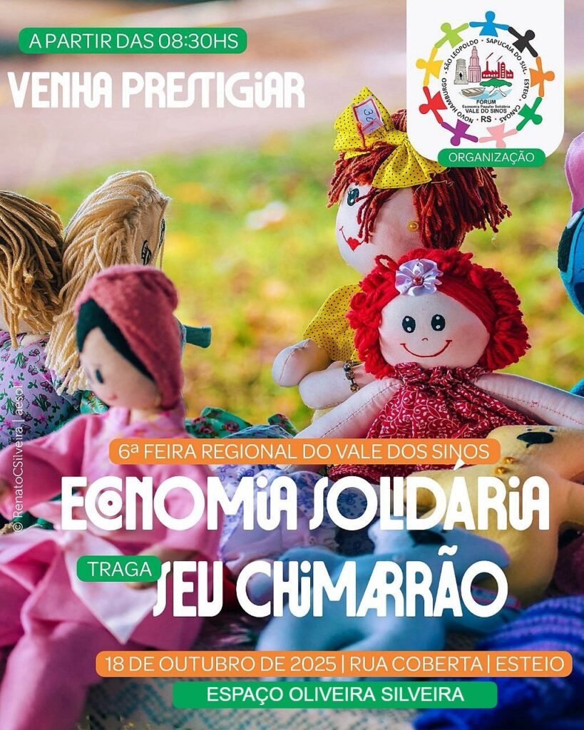A população de Esteio e da região do Vale do Sinos tem um compromisso marcado com a sustentabilidade e a justiça social neste sábado, dia 18 de outubro: a 6ª Feira Regional do Vale do Sinos da Economia Solidária. O evento, promovido a partir da articulação de Movimentos Sociais do Fórum Regional de Economia Solidária, será realizado no Espaço Oliveira Silveira, localizado no Centro de Esteio/RS (Rua Garibaldi, esquina com a Avenida Presidente Vargas).