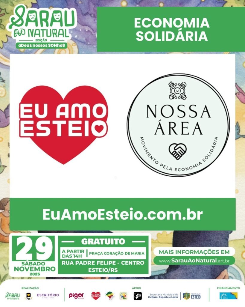 A iniciativa conta com a parceria e o apoio do portal Eu Amo Esteio e da Nossa Área – Movimento Pela Economia Solidária.