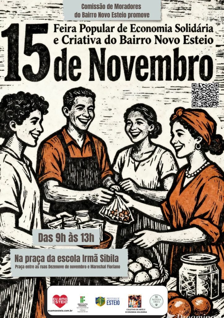 A feira é concebida como uma “ação saudável de mobilização pela reconstrução da vida dos moradores” do Novo Esteio, bairro que foi “fortemente atingido pelas cheias de 2024”. O objetivo é a recuperação material, estrutural e emocional das pessoas.