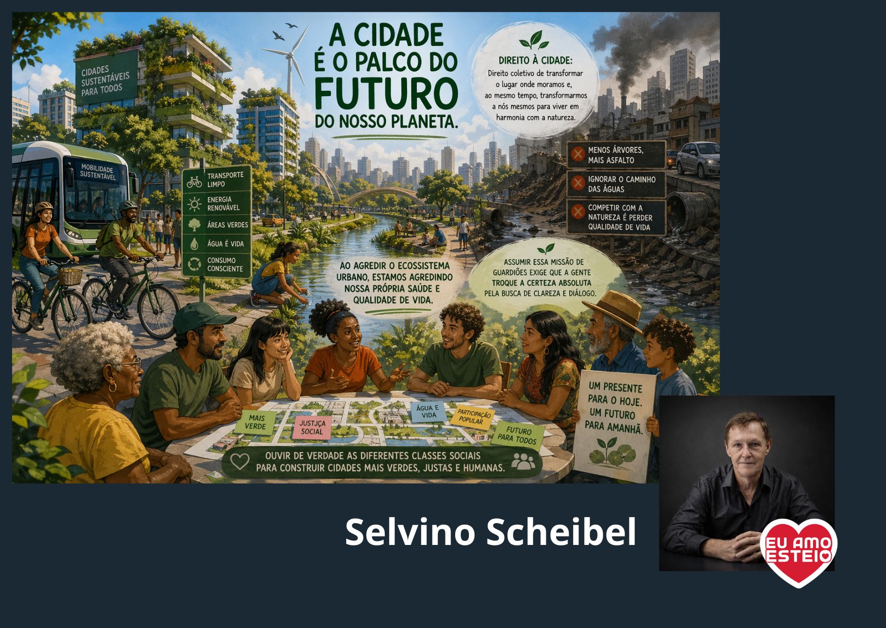 Nossa responsabilidade é entregar às próximas gerações um entorno humano mais verde, vivo e solidário do que aquele que recebemos. Isso requer que as políticas públicas deixem de focar apenas em resultados imediatistas de mercado para priorizar ambientes que fertilizem a dignidade humana e a preservação da biodiversidade urbana. A reconfiguração das nossas cidades passa pelo reconhecimento de que somos parte de uma teia interdependente: ao agredir o rio que corta a cidade ou eliminar as praças em nome de uma falsa beleza, agredimos a nossa própria qualidade de vida. Somente através de um compromisso radical com a alteridade e com a racionalidade sistêmica poderemos converter nossos amontoados de gente em comunidades de sentido, honrando nosso papel como agentes conscientes da transformação planetária.