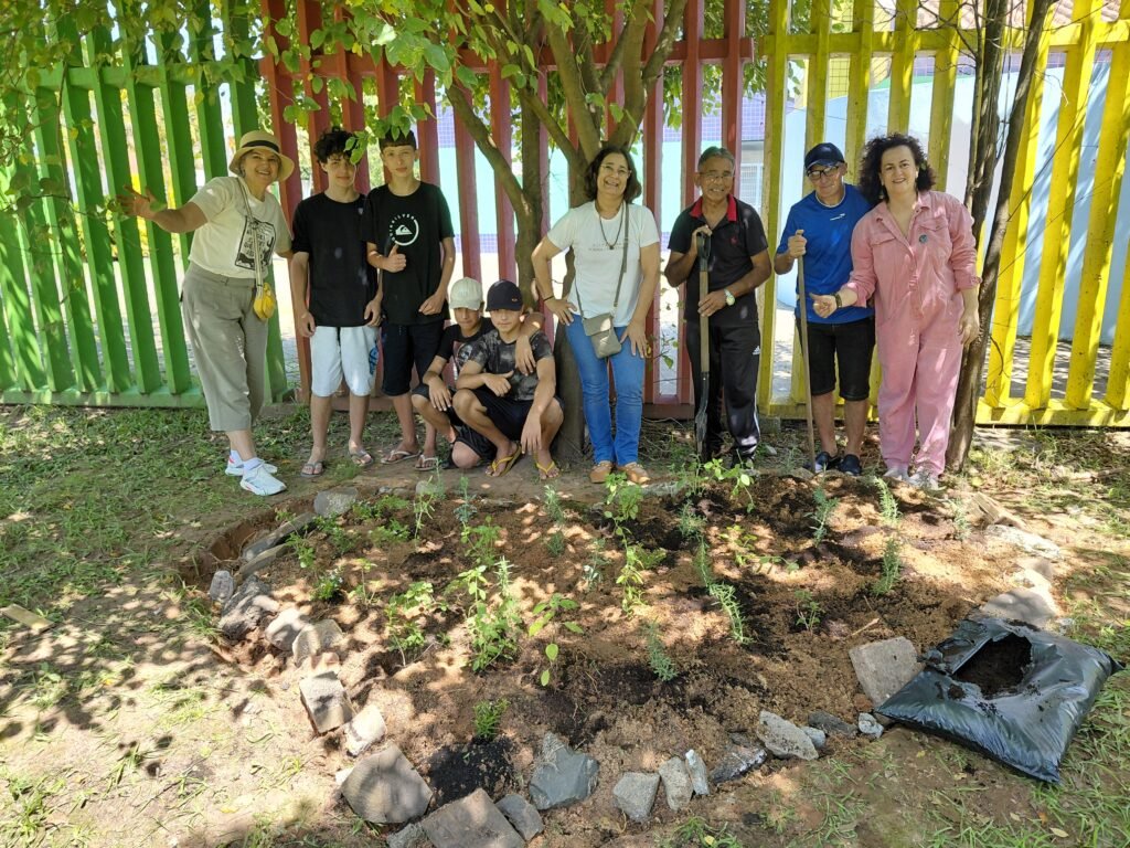 Jardim comunitário com a participação de estudantes da Escola Luiza Fraga