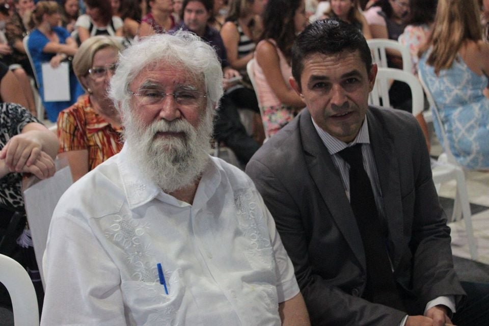 Leonardo Boff e Charles Scholl em atividade de formação de professores em Alvorada